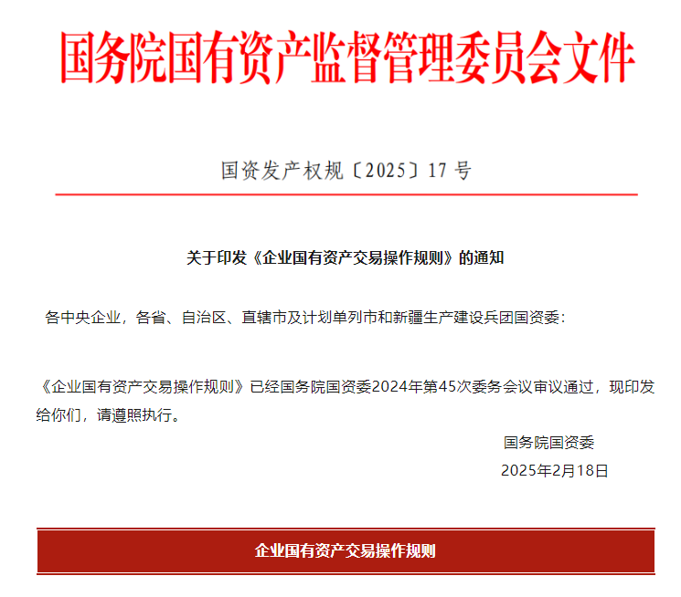為進(jìn)一步完善企業(yè)國有資產(chǎn)交易制度,提升國有資產(chǎn)流轉(zhuǎn)配置效率和規(guī)范性,近日,國務(wù)院國資委修訂印發(fā)了《企業(yè)國有資產(chǎn)交易操作規(guī)則》(以下簡(jiǎn)稱《規(guī)則》)。此次《規(guī)則》修訂主要體現(xiàn)在以下方面: